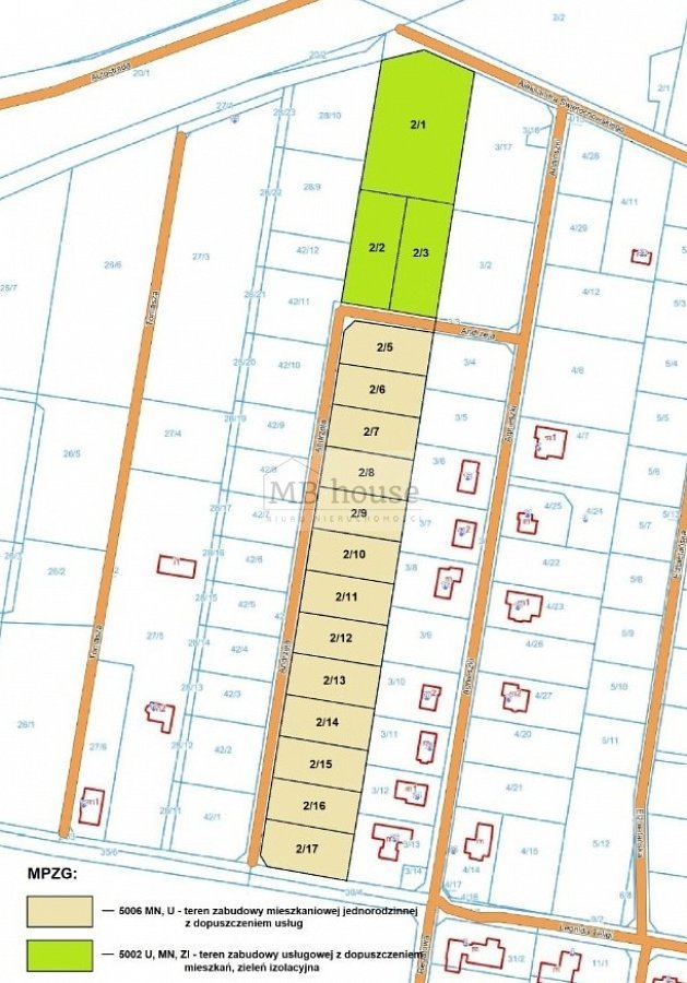 przeznaczenie terenu: zabudowa mieszkaniowa jednorodzinna wolnostojąca lub bliźniacza z dopuszczeniem